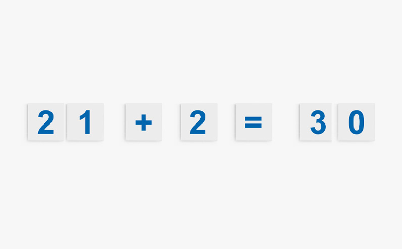 Verschieben Sie eine Zahl dieser Gleichung, sodass die Gleichung stimmt.