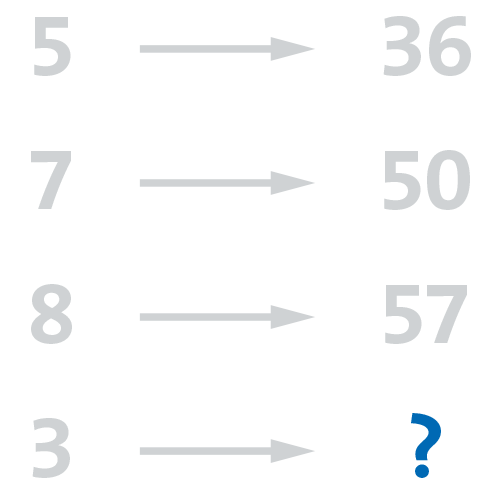 Die Zahlen in der linken Reihe werden mit 7 multipliziert und dann mit 1 addiert.